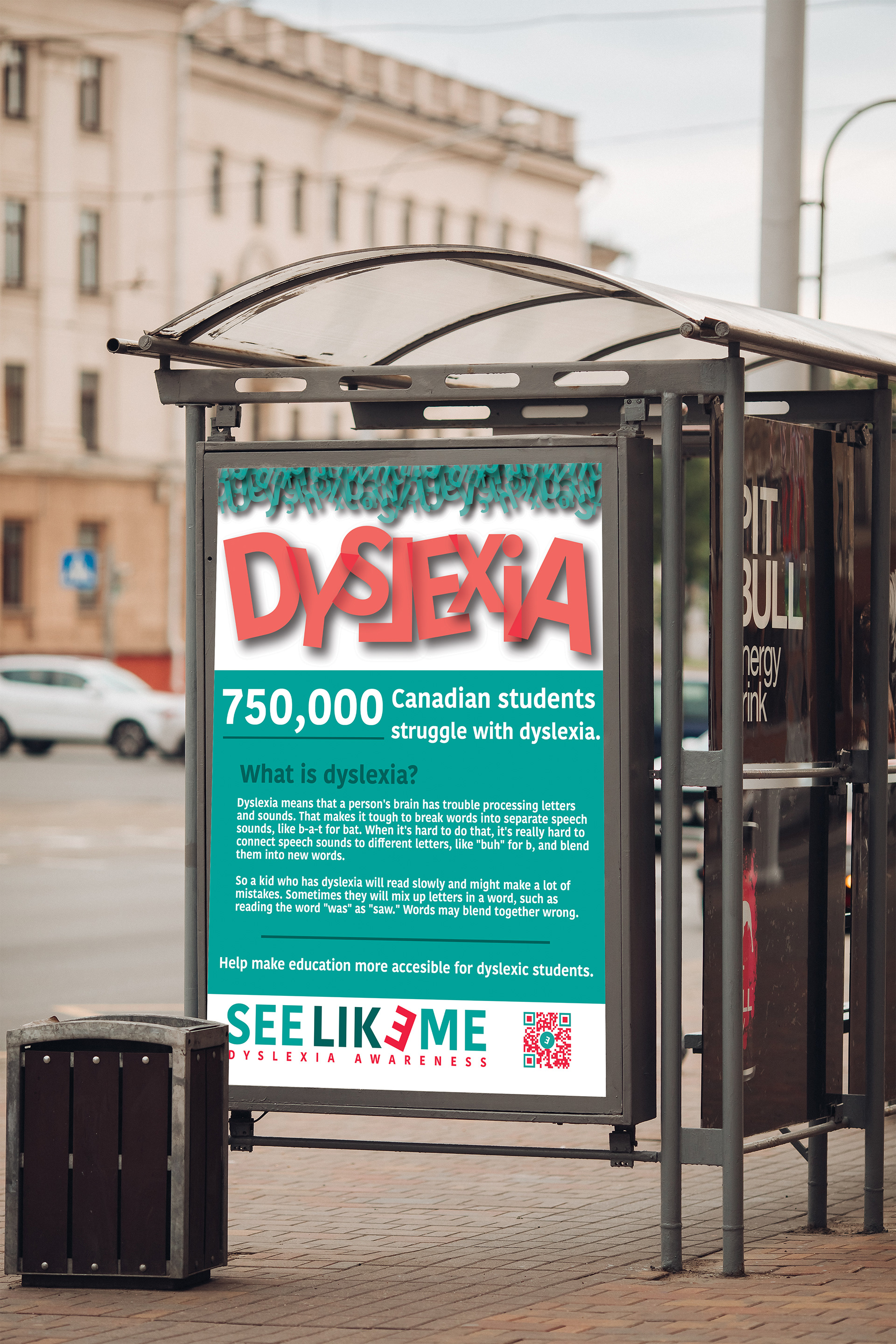 This social good campaign was designed to bring awareness to dyslexia and the many struggles that go unnoticed. Through a few different design techniques, the style mimics how those with dyslexia might see the world around them. The strong fonts and bold colours catch the eye and draw the viewer in.
